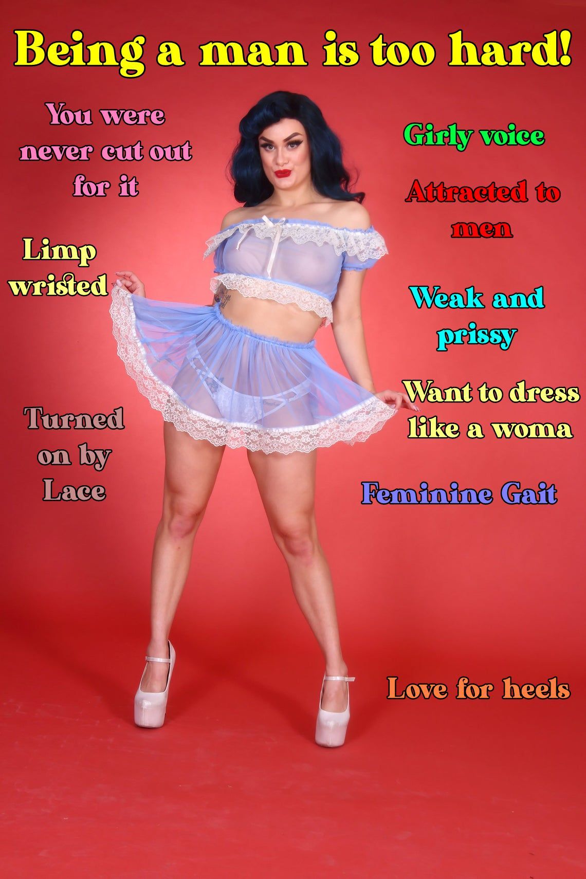 Pin On Prissy Sissy from i.pinimg.com Many sissies are young, in college, and are looking for daddies who will make them feel feminine. Feel feminine wearing our line of high heels that are beautiful, sophisticated and made to fit sissies perfectly! I don't qualify as a real man, just a sissy fairy faggot. My last lover turned on by watching my sissy husband in her satin frilly dress and high heels. Maybe they tried on their mother's panties or they played around with makeup. It will have many ideas based on my thoughts about how life could be for me as a married, crossdressing sissy maid. The new age lifestyle community which you have brought into life is so much, so infinitely better than sissify.com and other similar sites which support the humiliation of feminine boys by imposing unnatural ideas of femininity, such as slave and maid service, prissy sissy mincing lisping curtsying femininity, rather than beauty. Im so glad i plucked upthe courage to tell her early on in our relationship, shes very supportive and even takes me on shopping trips to choose new clothes which is fantastic, shes really great about it and enjoys seeing me dressed.